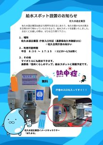 佐久水道企業団は創立70周年を迎えるにあたり、佐久の豊かな水の恵みを日常の中で味わっていただけるよう、庁舎入口付近に給水スポットを設置しました。